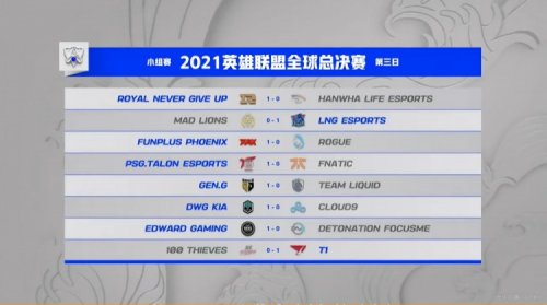 《英雄联盟》S11小组赛第三日赛程已经结束,在第三日的比赛中LPL的四支战队状态依旧火热,全部取胜。RNG击败HLE,LNG击败MAD,FPX击败RGE,EDG击败DFM。LCK赛区取得三胜一负,GenG击败TL,DK击败C9,T1击败100T。仅有HLE在本日输掉比赛。