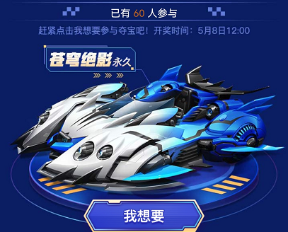 全体用户都可以参与夺宝活动,5月8日12:00准时开奖,奖品是永久A车苍穹绝影。感兴趣的玩家不妨试试运气,说不定中奖的幸运儿就是你哦!