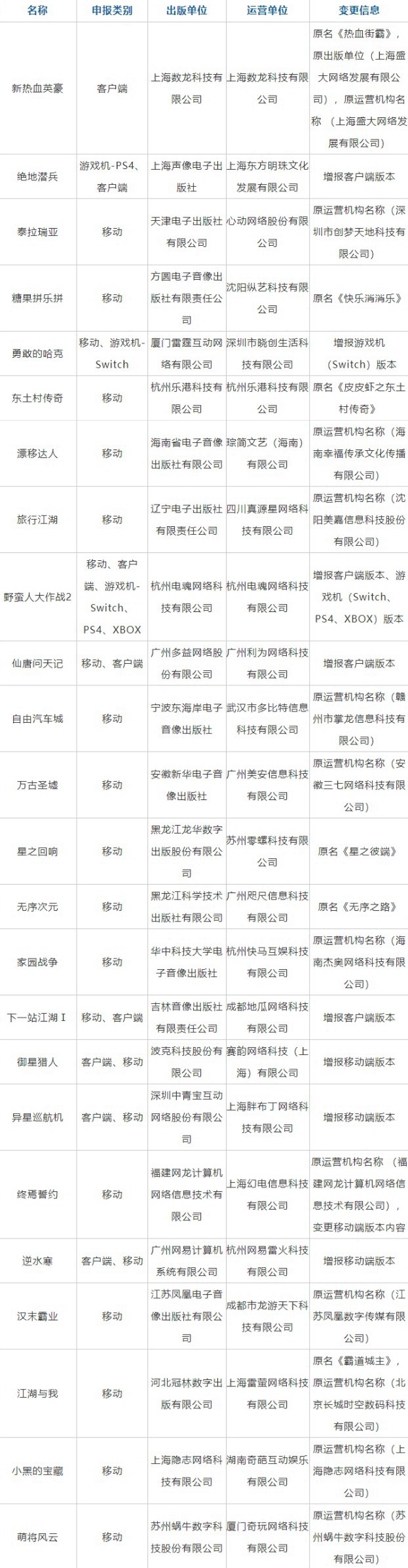 国家新闻出版署公布2023年1月国产网络游戏审批版号名单。本次共有88个游戏过审,其中包括《崩坏:星穹铁道》、《白夜极光》、《火炬之光:无限》、《黎明觉醒》等令人期待的作品。此外2023年第一批版号,第一次以“审批变更信息”公布了一批版号。这其中有网易旗下开放世界游戏《逆水寒》手游。